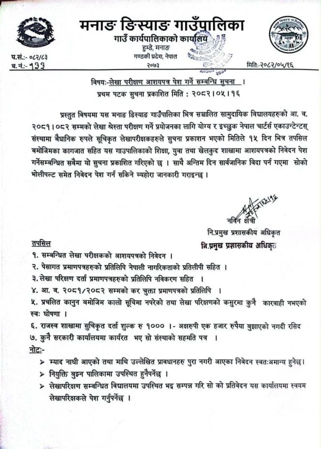 लेखा परीक्षण आशयपत्र पेश गर्ने सम्बन्धि सूचना ।