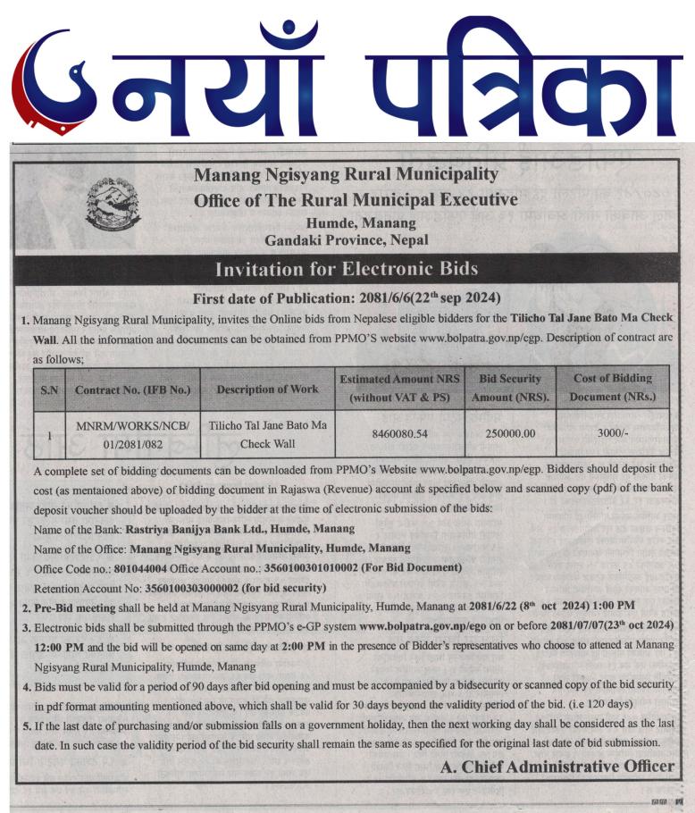 मनाङ ङिस्याङ गाउँपालिकाको "घ" वर्गको निर्माण व्यवसायी इजाजतपत्र सम्बन्धी कार्यविधि, २०७७