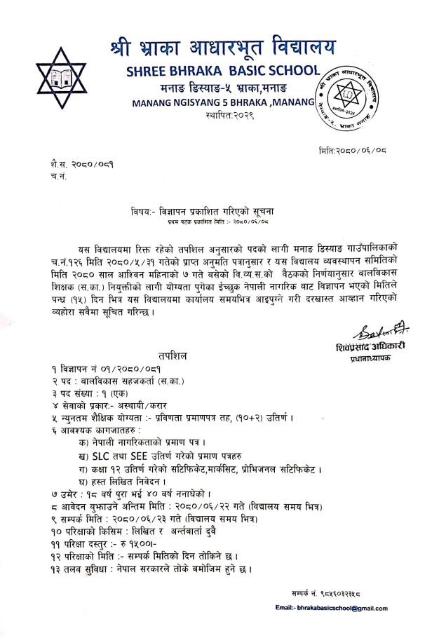 विज्ञापन प्रकाशित गरिएको सूचना